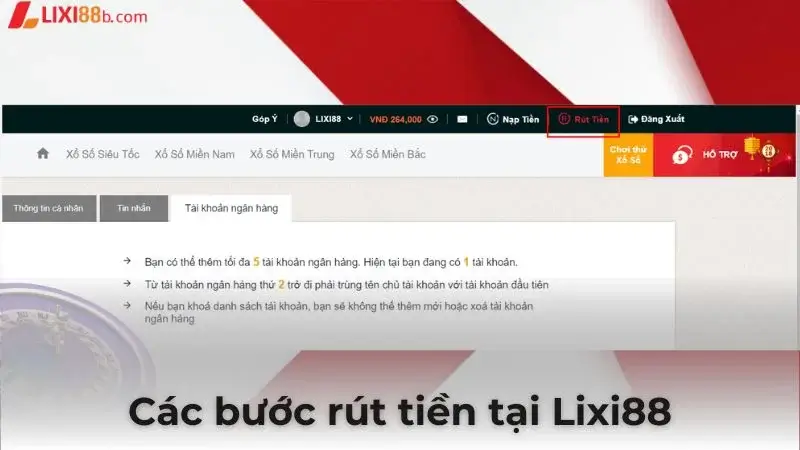 Các bước rút tiền tại Lixi88