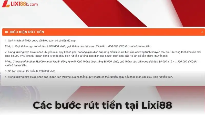 Điều kiện rút tiền tại Lixi88